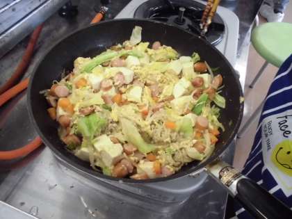 野菜のベーコン巻き、豆腐と野菜のチャンプルー、ベーコンポテト、どれもとても美味しくできました。