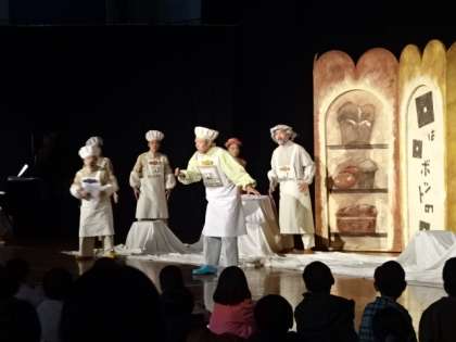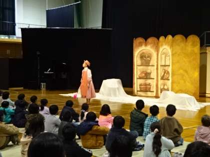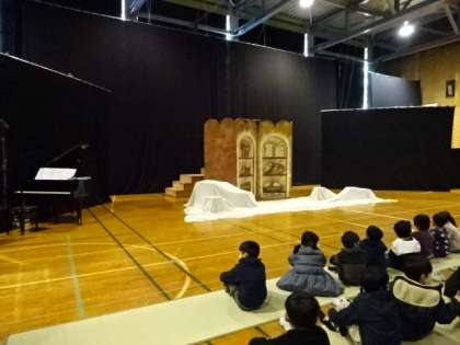 劇団の皆さんの演出で、体育館が素敵なシアターとなりました。迫力ある声楽で繰り広げられる素敵な舞台を、生で鑑賞することができたのは、子供たちにとって素敵な経験の機会となりました。