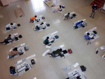書初用の下敷きをもって来られないお子さんもおられます。下敷きが半紙用のものだと、短いため下敷きを移動させる手間が増え、書きにくそうにしています。是非、「書き初め用の下敷き」のご用意をお願いします。