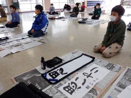 3年生は、初めての毛筆での書初となります。今年の文字は「思いやり」。みんな、友達を想像しながら、一生懸命に、丁寧に書いていました。