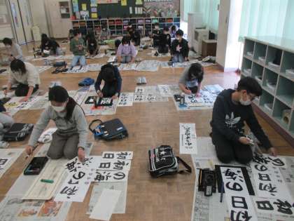 12月9日(木)5年生「書き初めの練習〜初日の海〜」