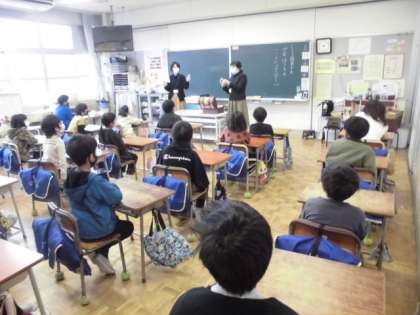 今日の2時間目に市立図書館四方分館の方が読み聞かせに来てくださいました。「つながる」というテーマで7冊の本を紹介していただきました。そのうち6冊の本を1月まで学級に貸し出していただきました。子供たちは、さっそく手に取り、じっくりと読んでいました。
