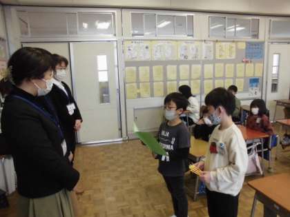 3枚目の写真は、終わった後に、お礼の手紙を読んだり、折り紙のプレゼントを渡したりしているところです。