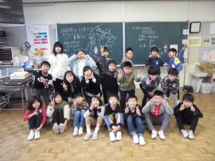 学級活動で集合写真を撮りました。元気いっぱい、笑顔いっぱいの子供たちです。