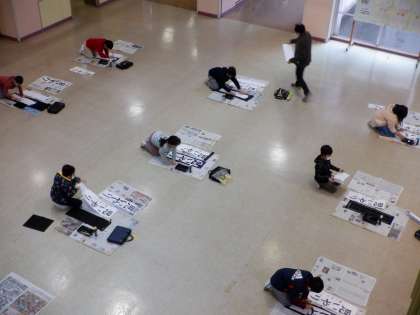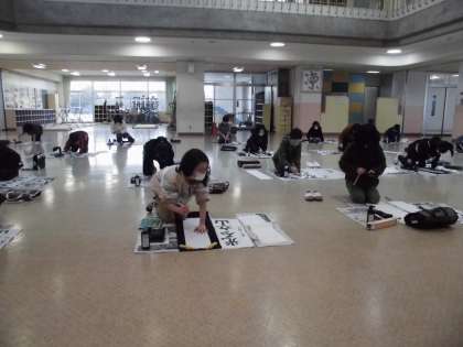 中学年は、コモンスペースで校内書初大会に臨みました。どの子も、「点画の筆使いや字形に注意して書く」という目当てをきちんと守り、さらに、よい姿勢で集中して書いていました。書き終えた子供が、席を立たず静かにその場で片付けを始める姿に、頼もしさを感じました。この集中力を生かし、いろいろなことにトラ(寅)イする年にしていきましょう。