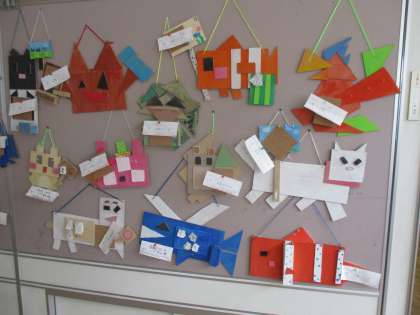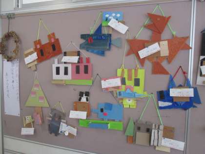 図画工作科の学習で、のこぎりやきり、金槌を使ってコルク伝言板をつくりました。学習参観の際に、ご覧いただこうと考えていたのですが、子供たちの作品をHPでご紹介します。細かい作業に粘り強く取り組む子、のこぎりで切った材料を組み合わせて、想像力を働かせながら作業を進める子、みんな意欲的に取り組みました。