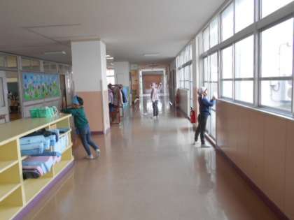 今、縦割り清掃はせずに、各学年が担当する場所を掃除しています。