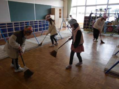 みんなきれいになるよう、集中して掃除する様子が見られます。