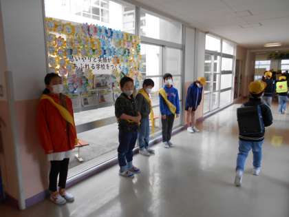 3月16日(水)あいさつたすきリレーの最終第27走者がスタートしました。3日間行い、最終ゴールは3月22日(火)で、全校児童がたすきをつなぎます。