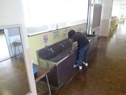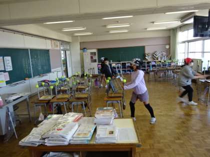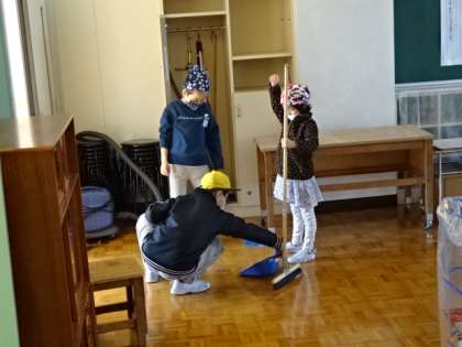 掃除の時間は、みんな静かに(しゃべらないで)一生懸命きれいにしていました。