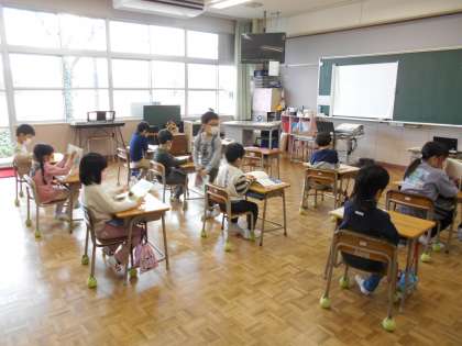 朝、登校後、ランドセルの中から連絡帳等を出して準備を整えたら、すぐに読書を始めています。とても静かに、本を読んでいる1年生の姿がいいね!