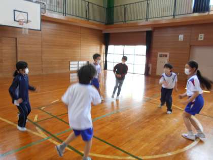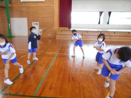 5月2日(月)3年生の体育「リズムダンス」の学習で、音楽にのって元気に踊る様子が見られました。踊る様子をクロムブックで録画したり、円になってみんなで見合ったりしています。どの子も汗をかくくらい、体を動かしているところがいいね!です。