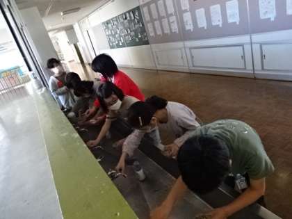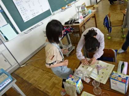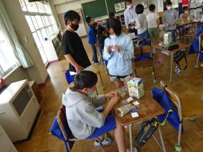 5年生の2時間目は、理科の学習でした。種の発芽についてグループで実験の準備を進めていました。