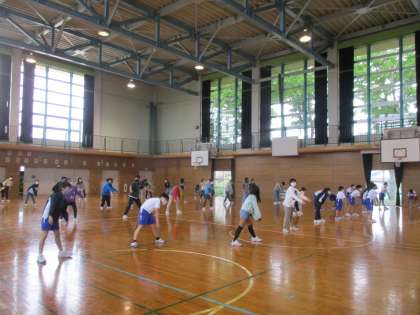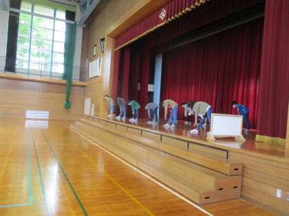 今日の生き生きタイムは、ラジオ体操の練習に参加しました。ステージの上の上級生をお手本にして、真剣に体操をしました。