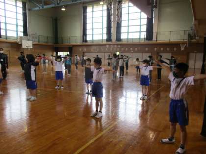 5月9日(月) 4年生 ラジオ体操の練習をしました