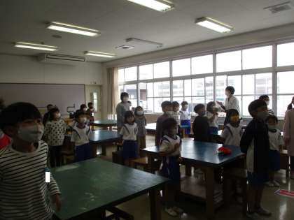 振り返りでは、「1年生は今日初めて歌ったのに、すぐに覚えてすごいと思いました」「3年生の声が大きくてびっくりしました」とお互いのよいところを伝え合うことができました。