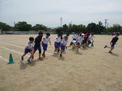 運動会に向けて、生き生きタイムに3分間走に取り組んでいます。音楽に乗りながら、楽しみながら、3分間が過ぎていきます。