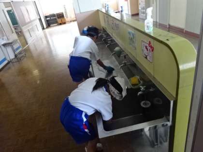 掃除は、1年生〜6年生までの異学年グループの縦割り班で行っています。
