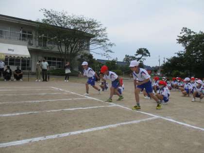 今日は、楽しみにしていた運動会。教室で「頑張るぞ!オー!」と気合いを入れ、グラウンドへ。50メートル走、ミニハードル走で力一杯走り抜くこと、綱引きや大玉運びで協力することを学びました。全力を出し切った子供たちの笑顔が輝きました。