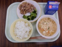 6月3日(金)の給食は、「ご飯、牛乳、鯖の塩焼き、香味和え、豚肉の南蛮煮、河内晩柑」でした。