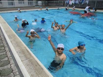 今日は、子供たちが楽しみにしていたプール開きでした。プールで気を付けることを聞いた後、いよいよプールへ!子供たちの笑顔がはじけました。