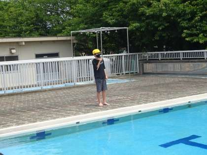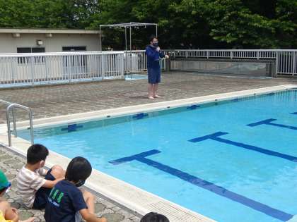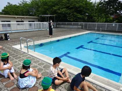 プール開きを行いました。校長先生のお話のあと、児童代表が目当てを話しました。プール担当の先生や養護教諭からプールで注意することについての話もありました。