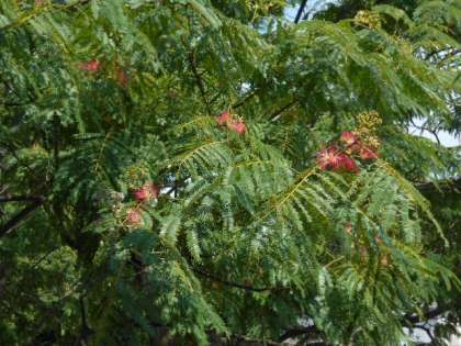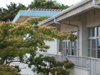 校庭にある「合歓木」の赤い花が待っていたかというように一斉に咲き始めました。窓の外から子供たちを応援しているようです。