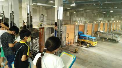 プラットホームでごみ収集車がごみをごみピットに入れているところを見ました。