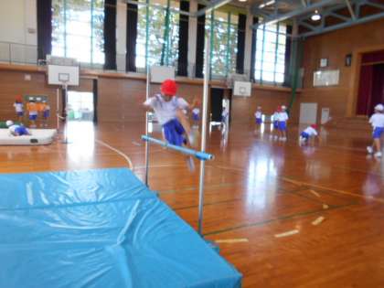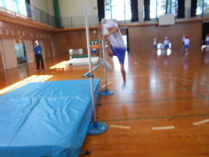 9月6日(火)4年生が体育館で「高跳び」の学習をしていました。助走のスピードやバーに入る角度等を自分で考え、試しながら何度も練習しています。