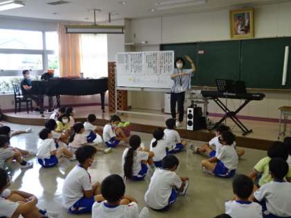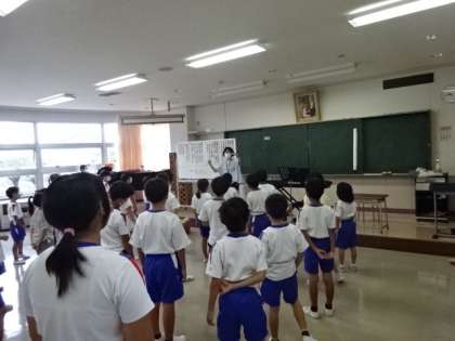2・3年生の1時間目は、音楽科の学習でした。区域の連合音楽会などで歌う「未知という名の船に乗り」という曲の練習をしていました。歌詞の意味を考えながら歌うことで、よりすてきな歌声にかわっていました。