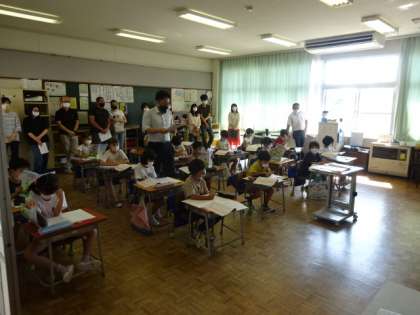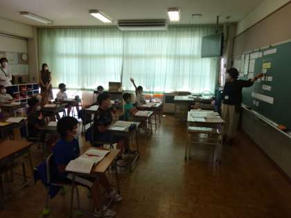 手を挙げて発表する児童もいました。4年生教室と2年生教室の様子です。