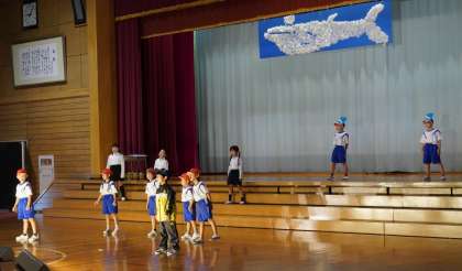 待ちに待った本番の日。「今までの練習の成果を出し切ろう」「みんなで協力してつくりあげよう」と気合いを入れてステージに上がりました。本番では大きな声で堂々と発表することができました。