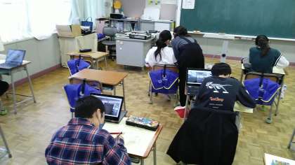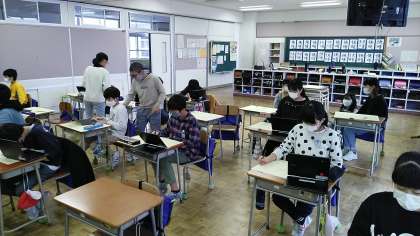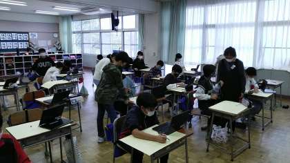 図画工作科で校舎の絵を描いていました。クロームブックで写真に撮って描いていました。