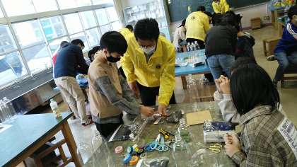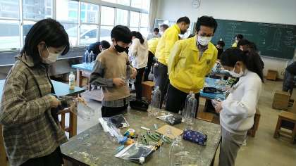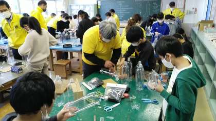 富山みなとライオンズクラブのみなさんが来校され、6年生と一緒にペットボトルロケットをつくってくれました。