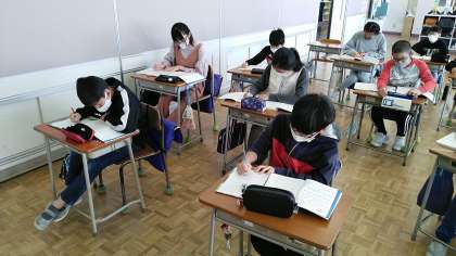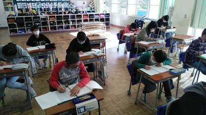6年生の1時間目は、漢字の学習でした。自分で考えた練習方法で漢字を覚えていました。