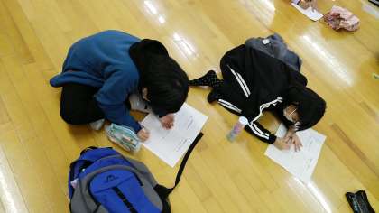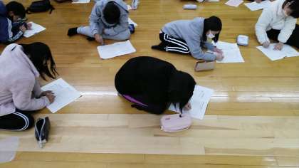 最後に、今日の振り返りを書きました。このあと、部屋に帰って寝ることになります。宿泊学習1日目の終了です。明日は、6時起床です。お楽しみに…。