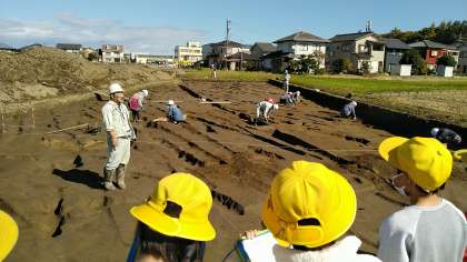 現在調査している遺跡の発掘現場では、江戸時代の畑のあとが見付かっているそうです。また、大昔にあった地震のあとも見付かっているそうです。