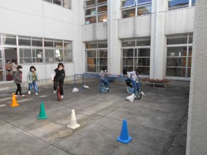 11月7日(月)生き生きタイムの様子です。今日もすっきりと晴れた気持ちのよい日です。ライトコートで遊ぶ子供たちが増えました。一輪車だけでなく、竹馬にもチャレンジしています。