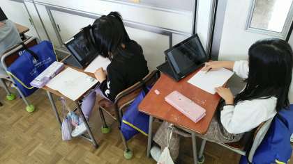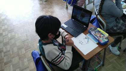 2年生は、3時間目に動物の絵を描いていました。クロームブックでファミリーパークを検索して自分の好きな動物を選んで描いていました。