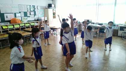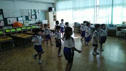 1年生は、3時間目にダンスを踊っていました。とてもかわいいダンスを踊っていました。