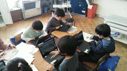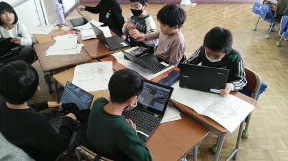 2年生の3時間目は、生活科の学習でした。地図やGoogleマップを見ながら、四方の町を調べていました。