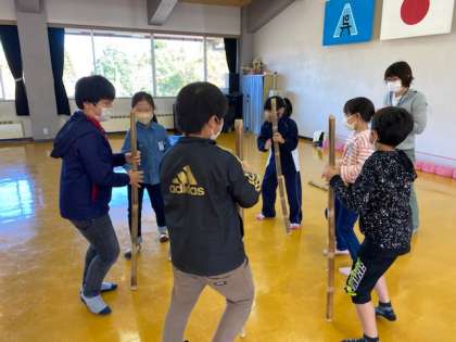 午後の活動、バンブーチャレンジ、スタートしました。