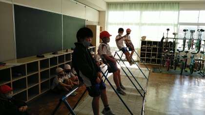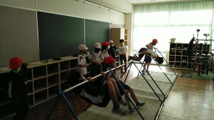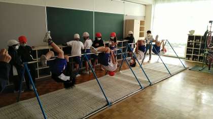 3年生の1時間目は、体育の学習でした。鉄棒をしていました。すずめやメリーゴーランドなどの技に取り組んでいました。