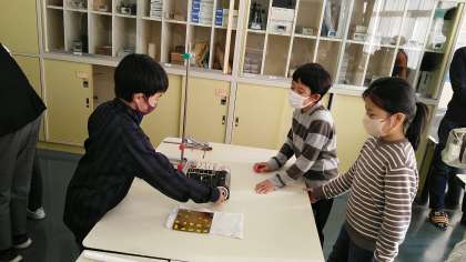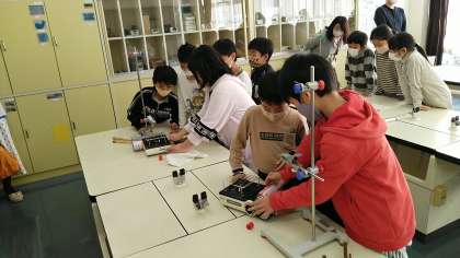 4年生の学習参観は、理科の学習でした。金属を熱したときのあたたまりかたについて調べていました。