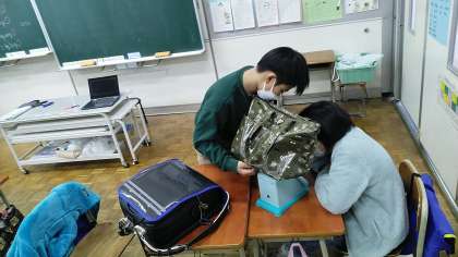 3年生の3時間目は、算数科の学習でした。はかりを使って重さを計っていました。