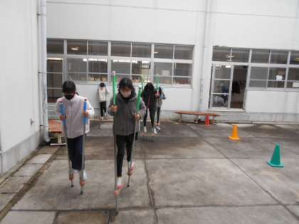 下:竹馬も同じです。ちょっと前まで壁に寄りかかっていた子供たちが、今では軽く歩けています。練習の成果ですね!