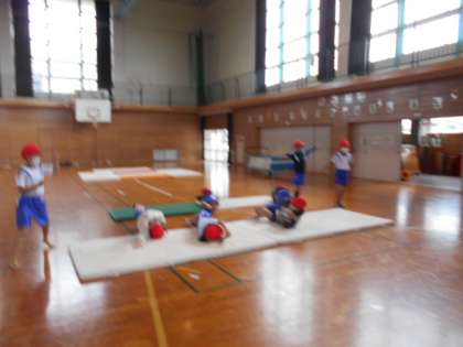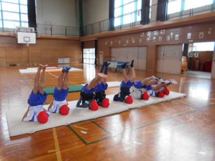 12月8日(木)4年生は体育でマット運動をしていました。写真は、赤団。