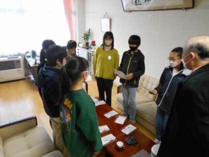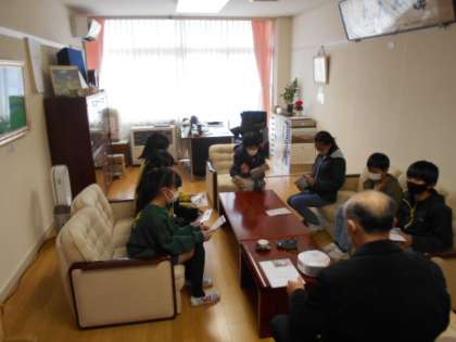 12月6日(火)四方赤十字奉仕団の団長さんが来校され、運営委員が募金活動の呼びかけに協力しました。ここ数年は、一緒に活動は行わず、呼びかける声を録音して協力しています。7人の6年生が、はきはきとして声で呼びかけました。