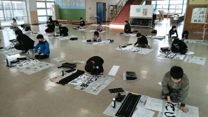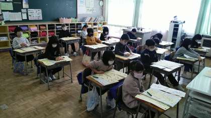 どの子供たちも、冬休み中に練習してきた成果を発揮しようと、集中して丁寧に一文字一文字書いていました。写真は、2年生と3年生です。