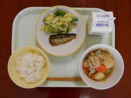 2月3日(金)の給食は、「ご飯、牛乳、鰯のおろし煮、野菜ソテー、豚肉とじゃがいものうま煮」でした。